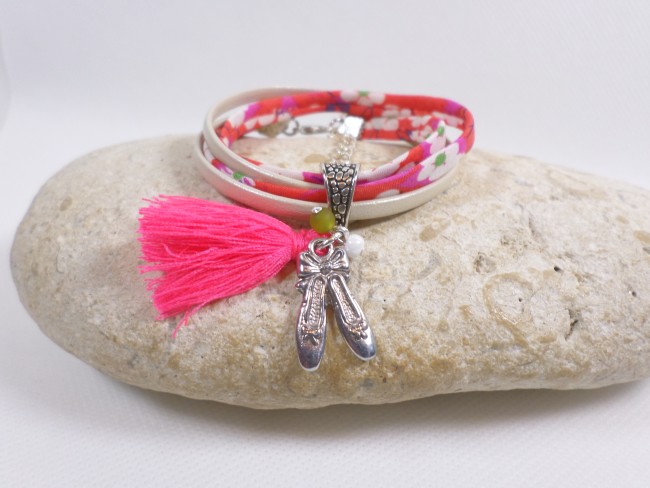 Bracelet Ballerine de Danse Tissu Liberty FuchsiaBracelets Fille